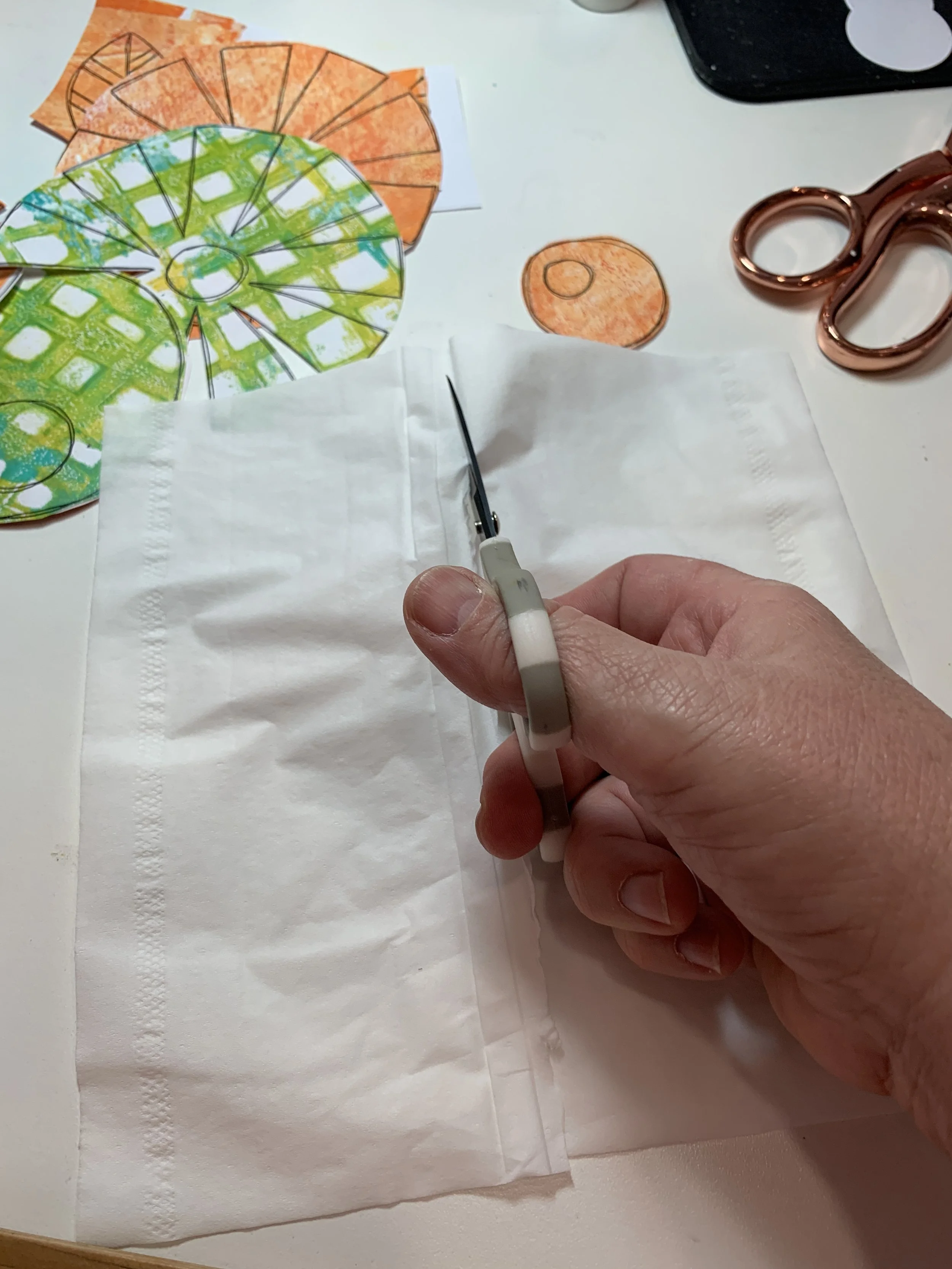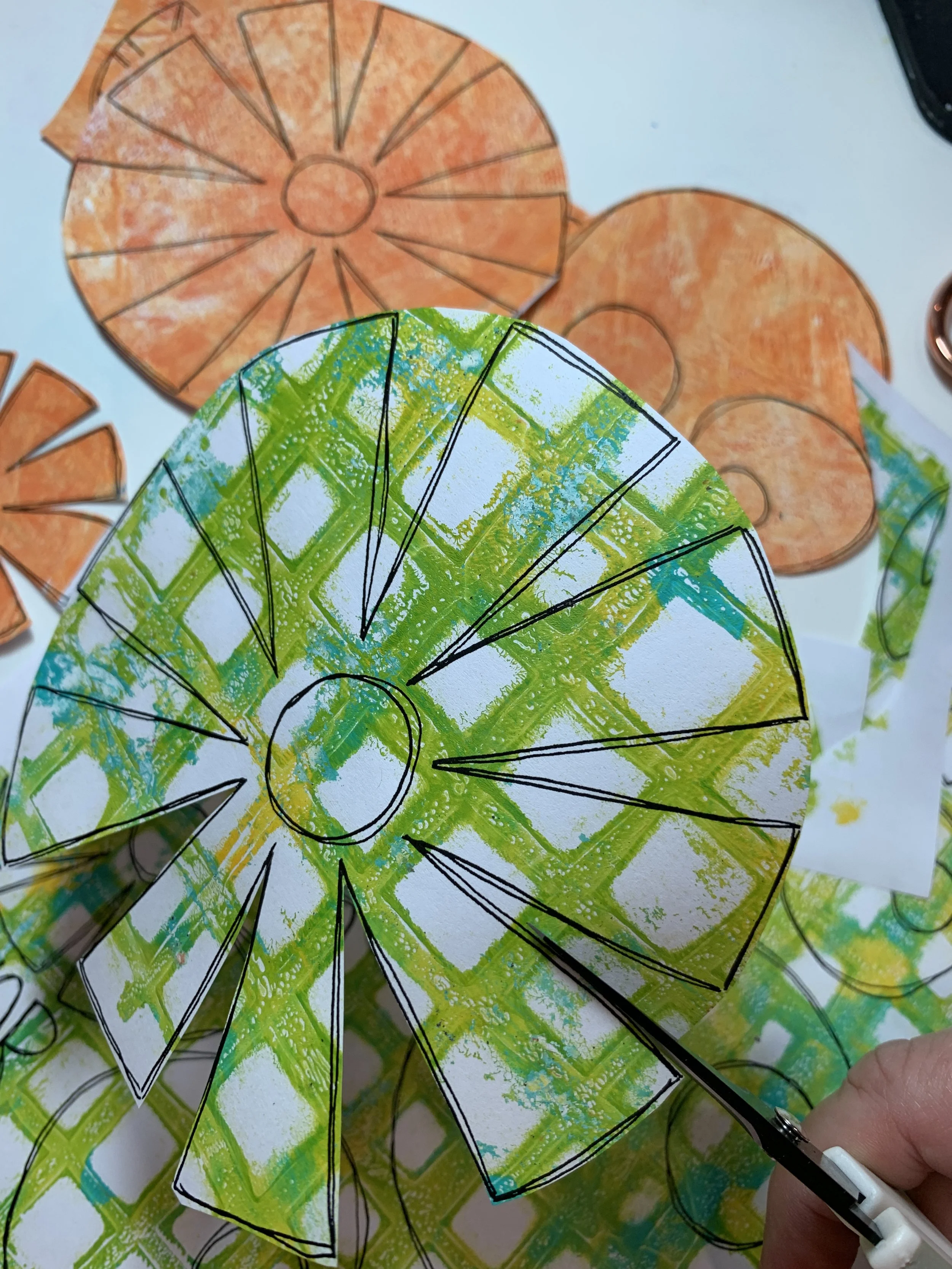 Cut two of the same flower from different gelli prints-we are about to make a reversable flower, of course!
