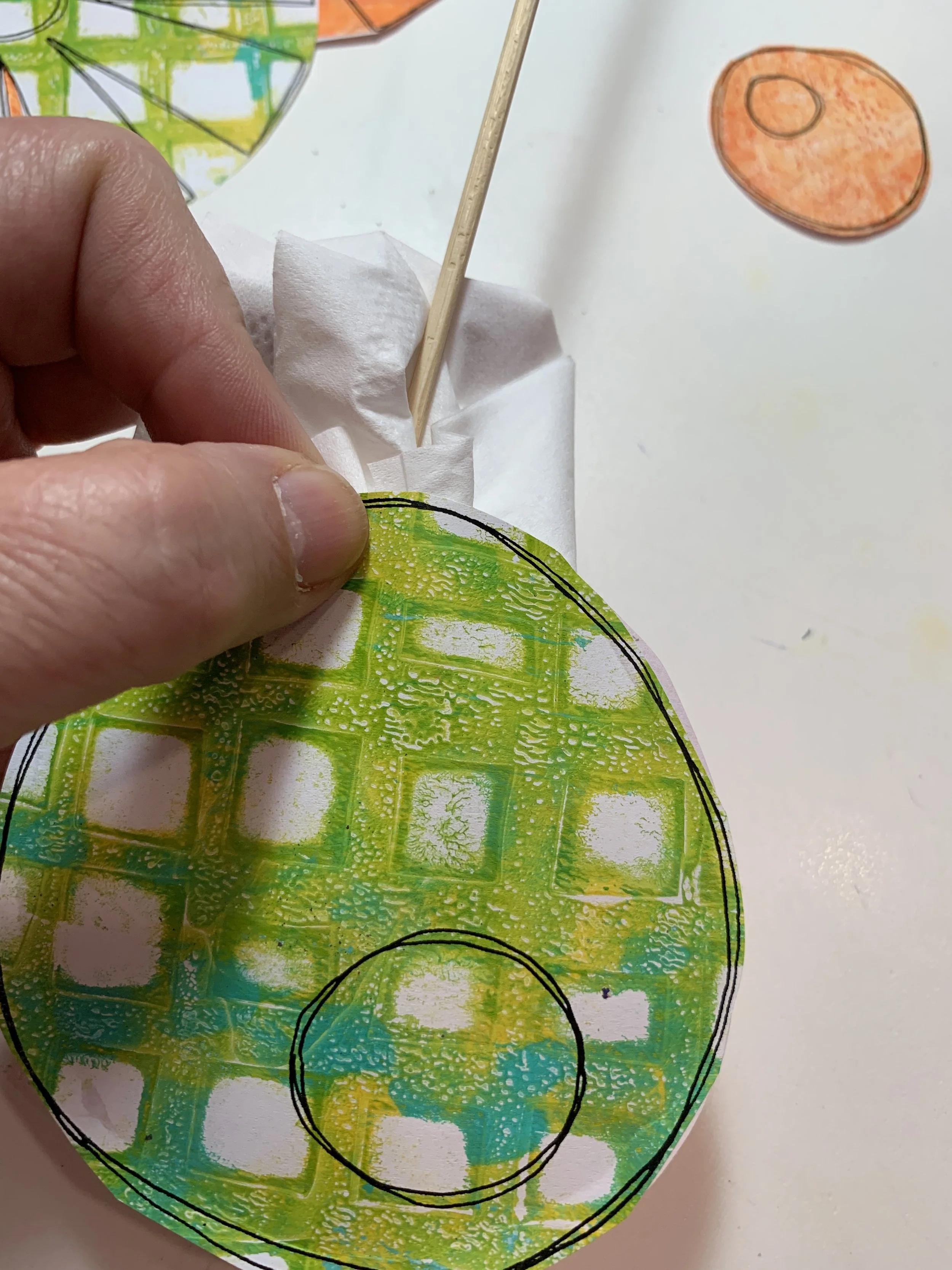 I used a Kleenex to stuff my flower-(it’s soft and pliable (I cut them in half-you don’t need much to provide dimension