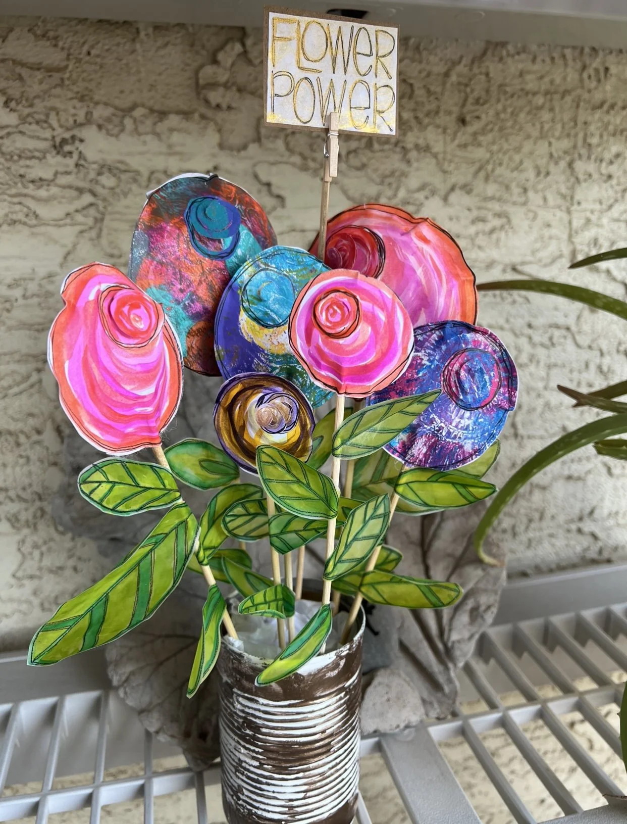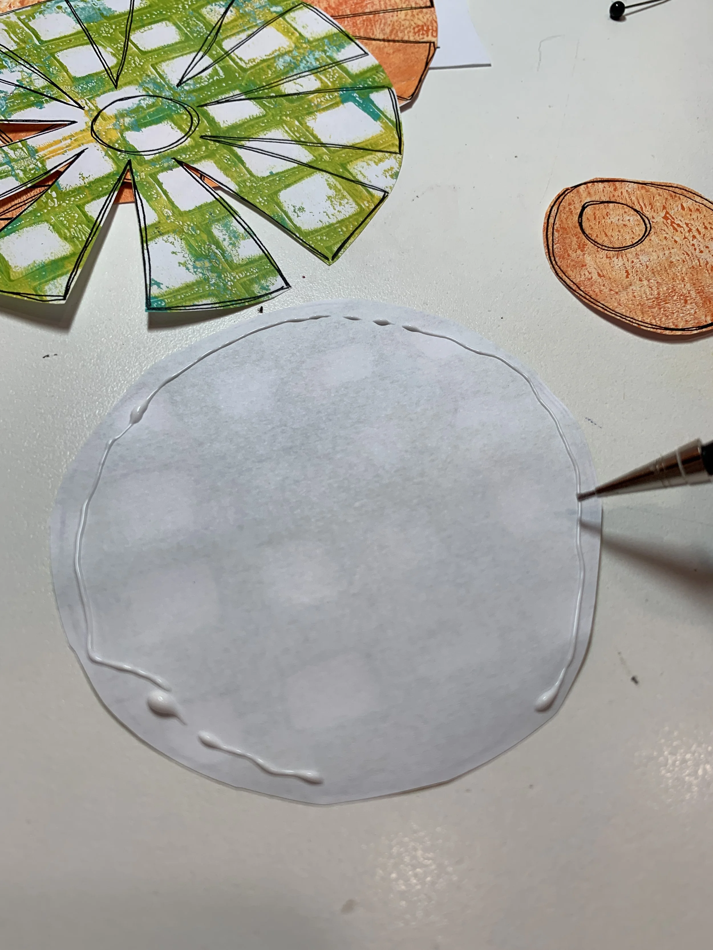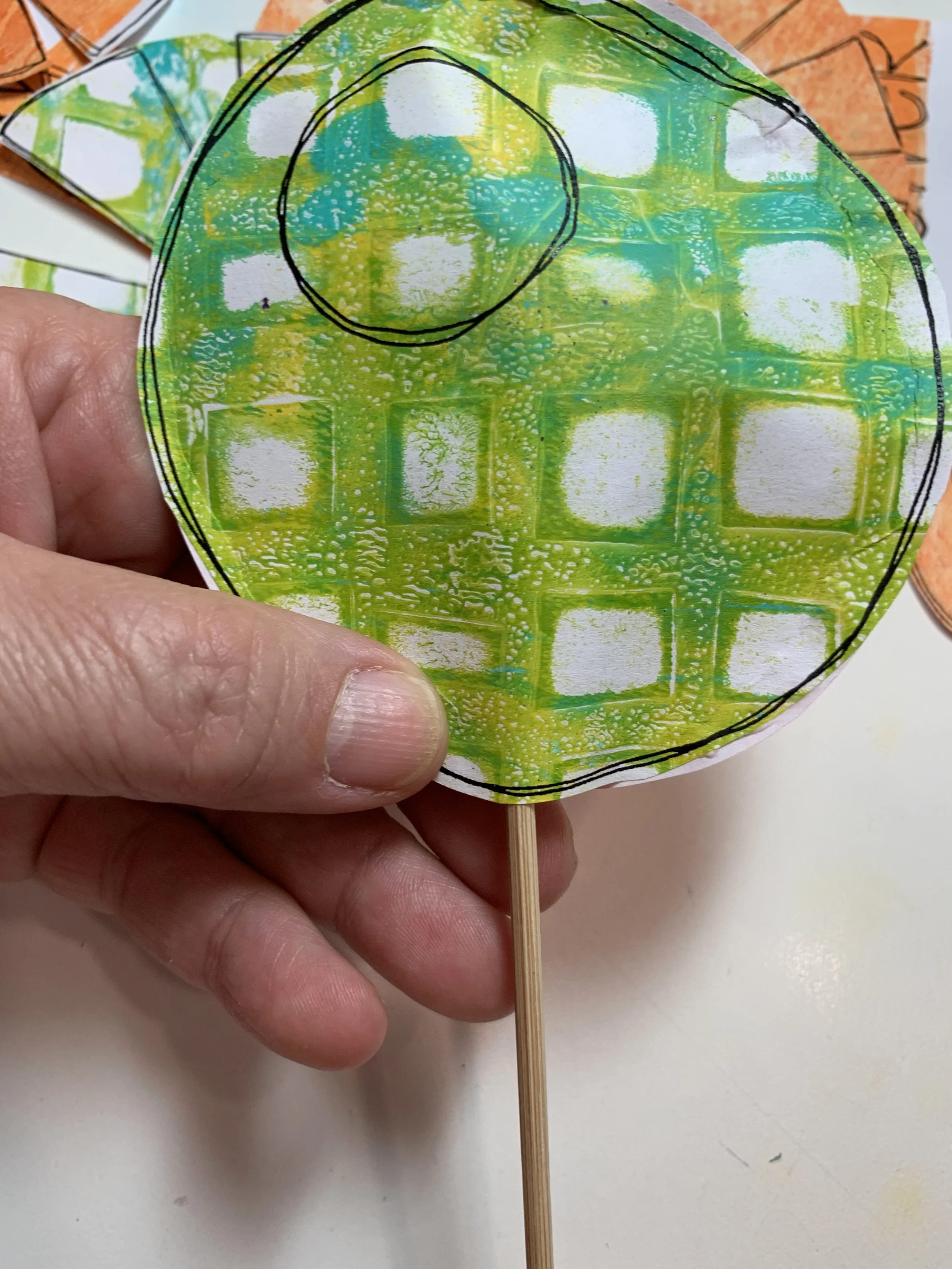 Here is Carmen’s version of the gelli print posey bouquet! She added some spiral bits for some added dimension and fun to the centers of her flowers.