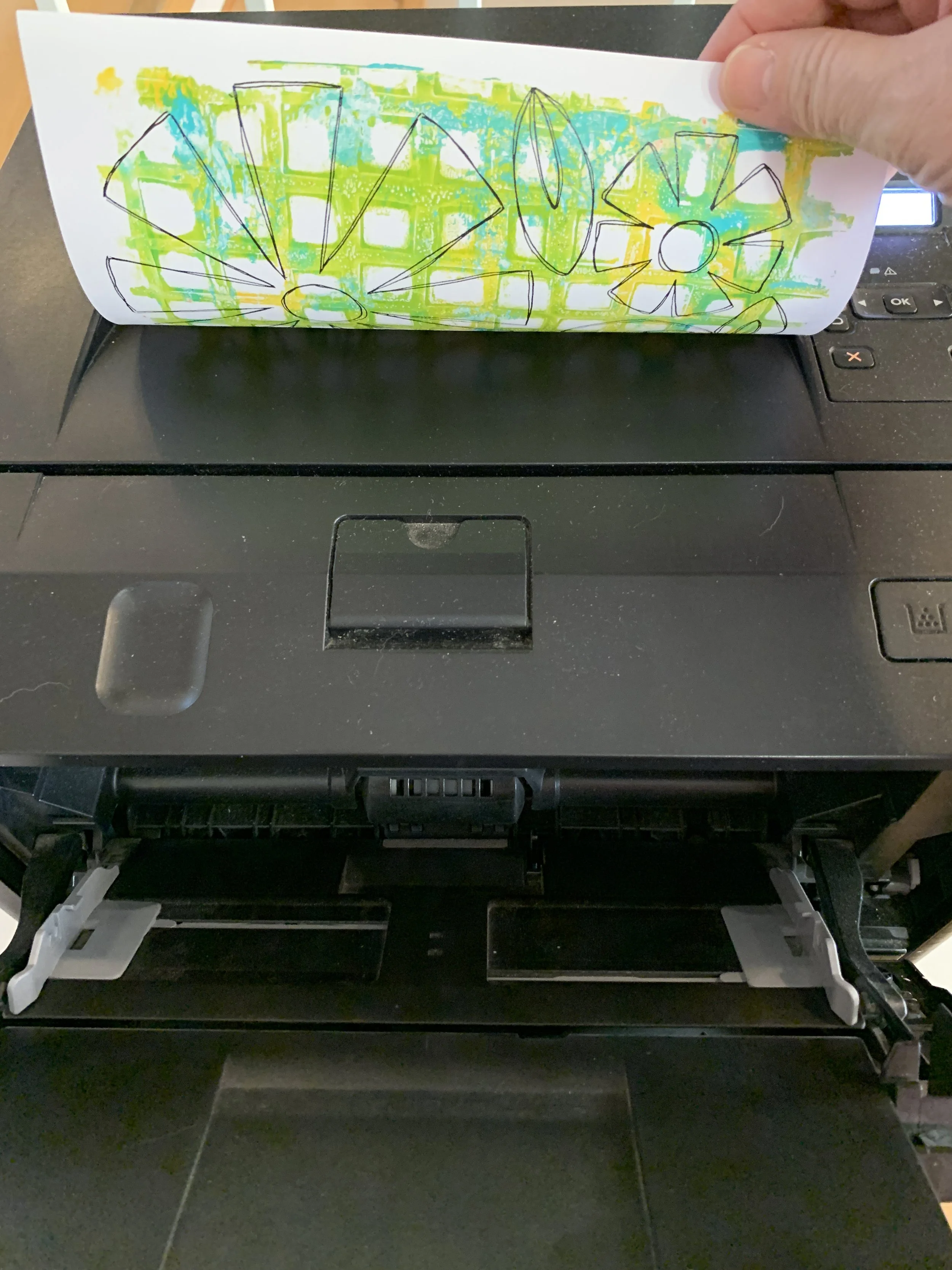 Recently, I came across a pile of gelli prints I had created during an art day with friends-I usually print on copy paper, (nice and thin) so I thought wonder if I can print my Flower Power art printable on a gelli print? That would be SO amazing! I called up Carmen and challenged her to doing the same! Holy Smokes the results were more magnificent than we ever imagined! I just knew we needed to share with you!!!